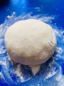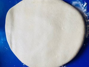 A hozzávalókból finom tésztát gyúrunk, ujjnyi vastagra nyújtjuk, tetejét bevagdossuk.